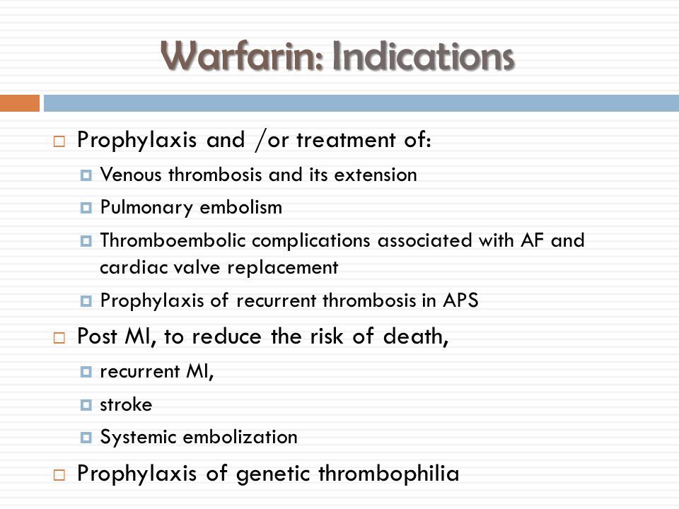 Not used to prevent arterial thrombosis, as this is driven by platelet aggregation, normally prevented by anti-platelet agents (aspirin/clopidogrel)