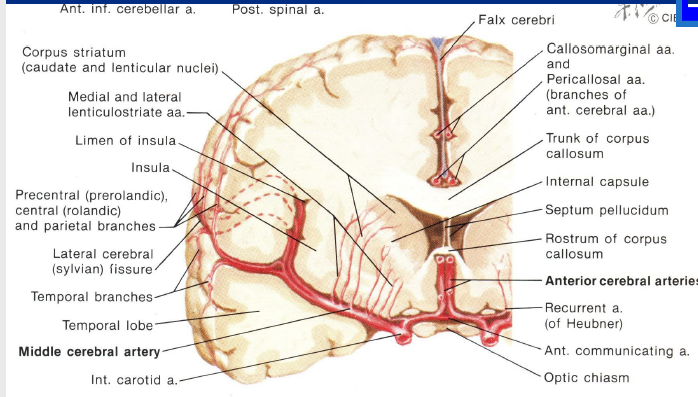 MCA- חלקים לטרליים של אונות פרונטלית + טמפורלית ופריאטלית