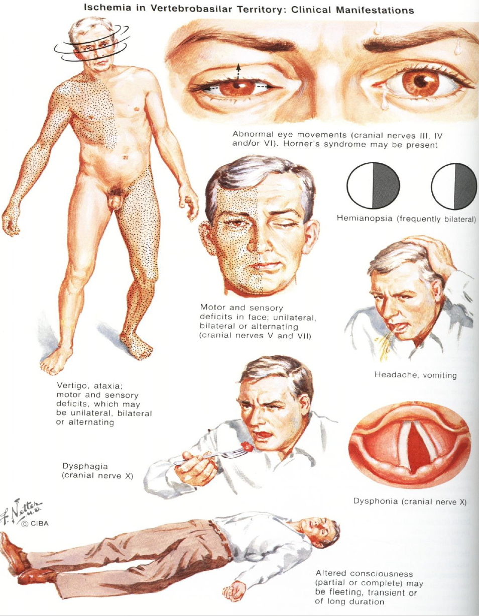 מהי ההסתמנות הקלינית של איסכמיה באזור ה-vertebro basilar arteries