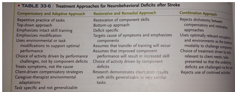 •First thing to look at of a stroke pt is: remedial ideally then compensatory if needed