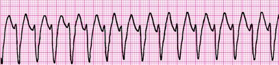 Your patient presents to ER short of breath with audible coarse crackles and complaining of chest pain. The patient is pale and cool and has BP 80/50 mmHg. The rhythm on the biphasic monitor is as follows: