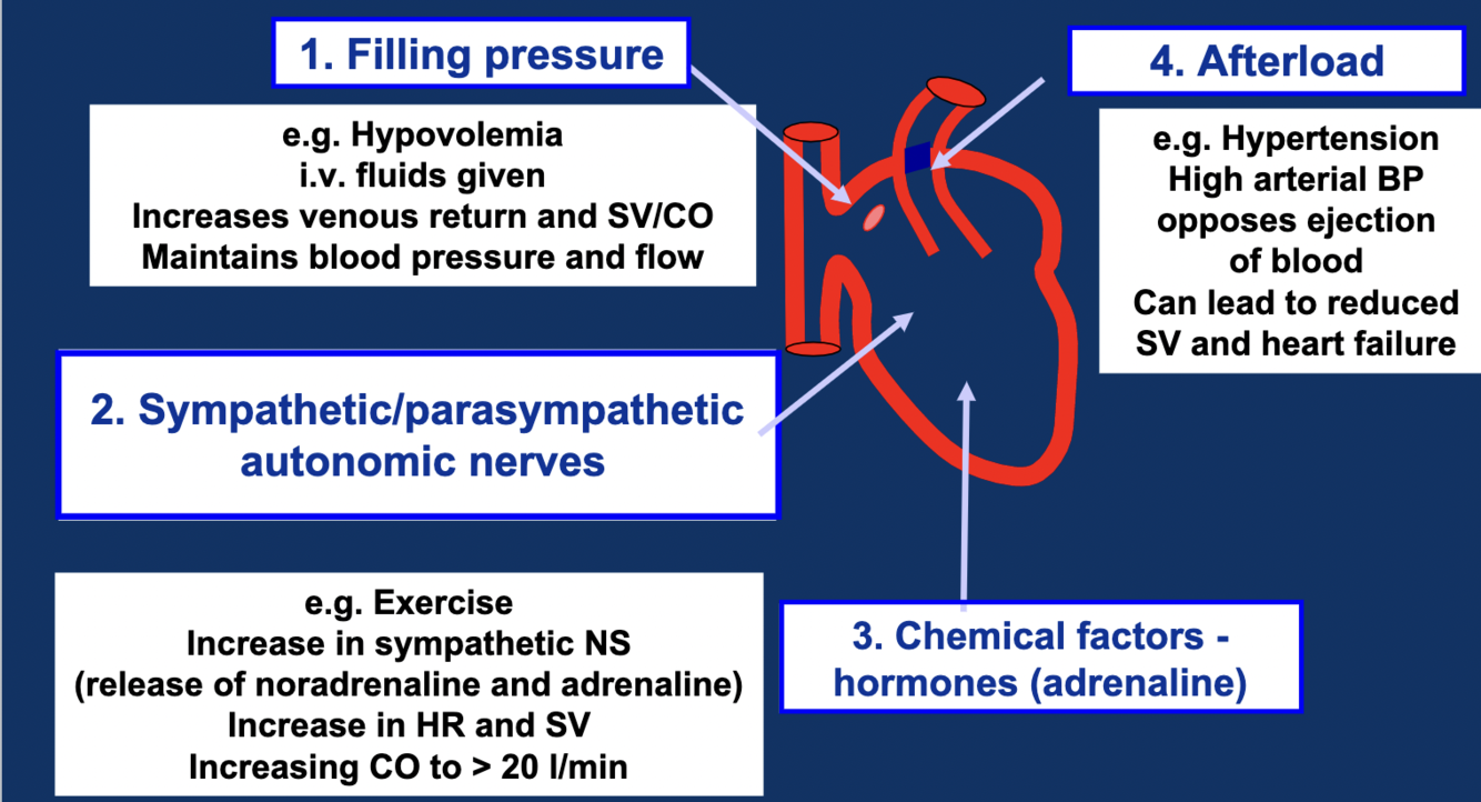 Filling pressure: if blood volume ⇣, you often give a patient fluids to ⇡ venous return. Increased return of blood to the heart ⇡ SV and CO, important to maintain blood pressure and flow.