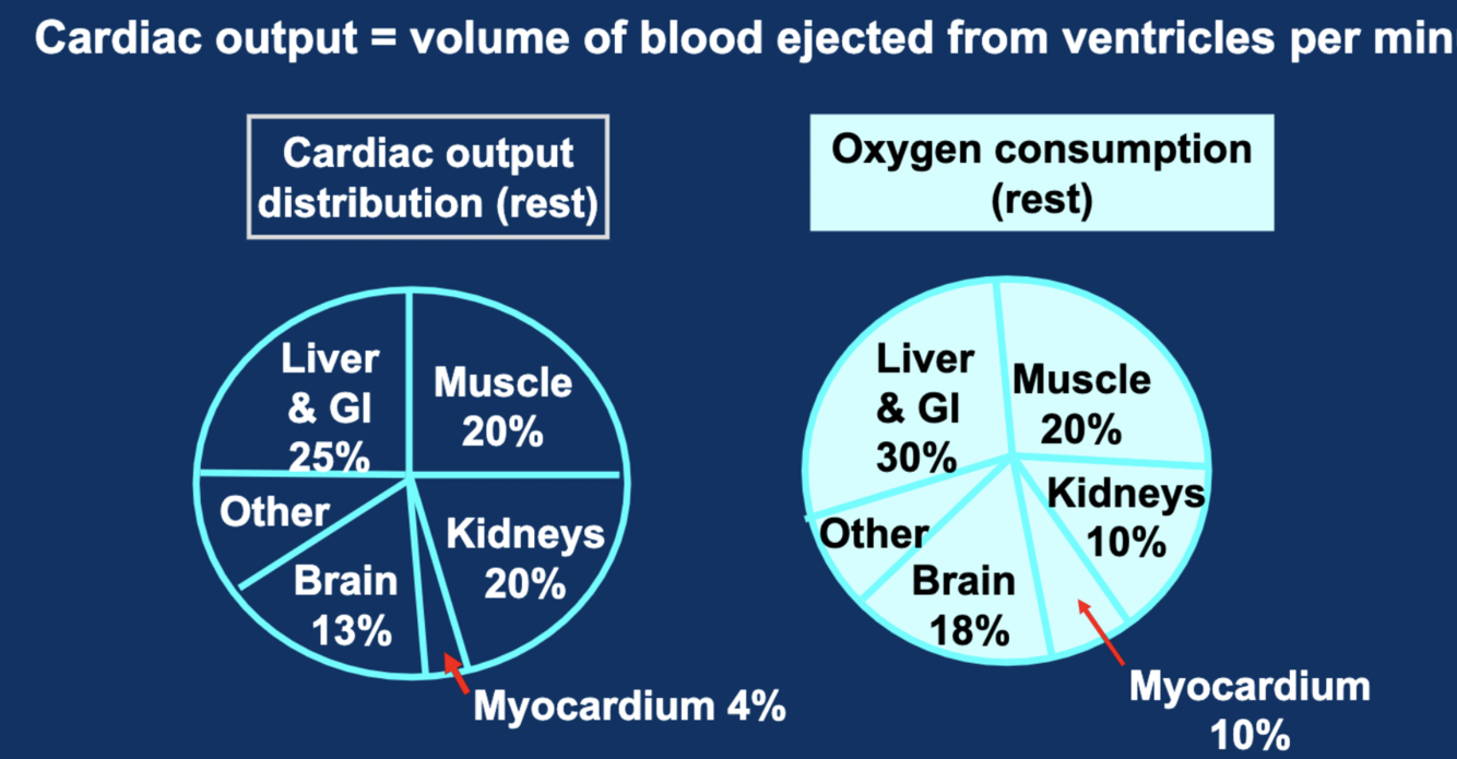 Generally cardiac output goes to organs which use up more oxygen. However we send lots more to the kidneys bc the kidneys filter blood and regulate bp.