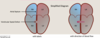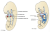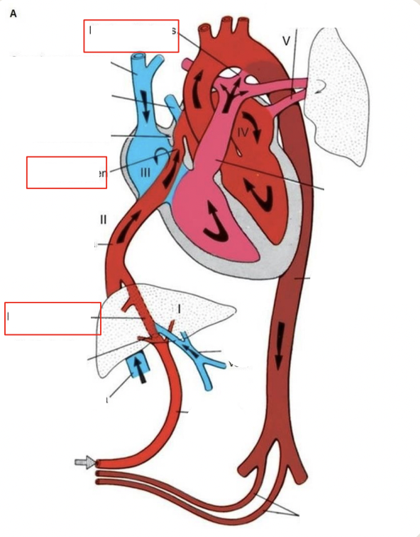 Developing __1__ receives __2__ blood from the mother via __3__ and __4__ vein.