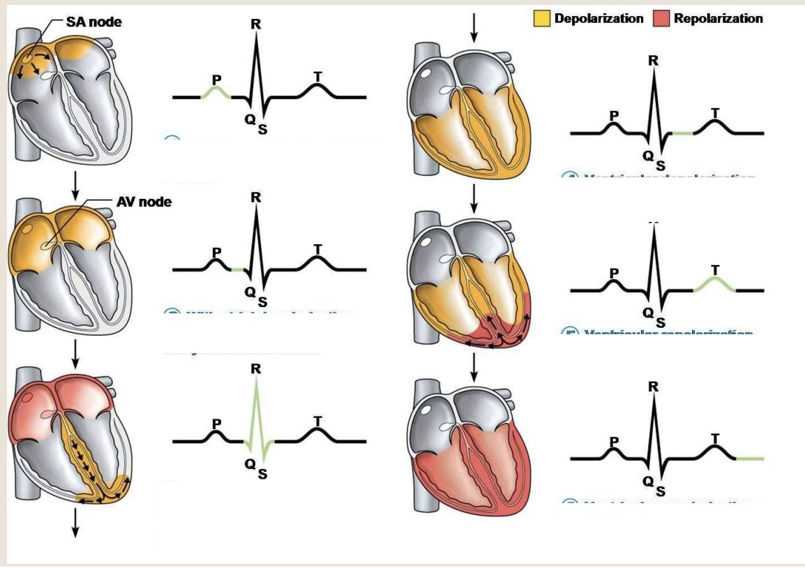 this spreads through the myocardium to produce a co-ordinated heartbeat