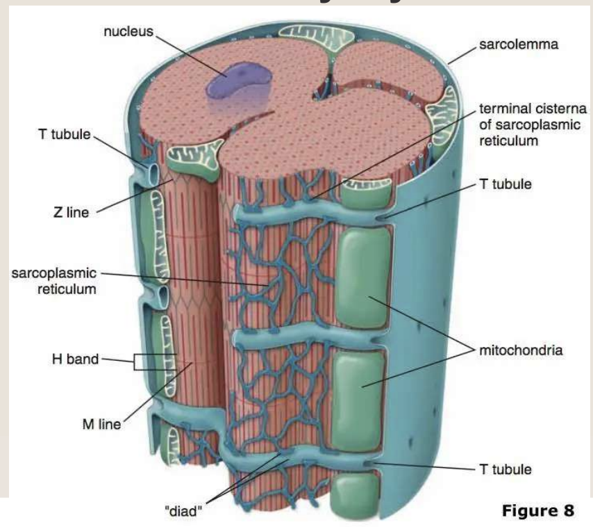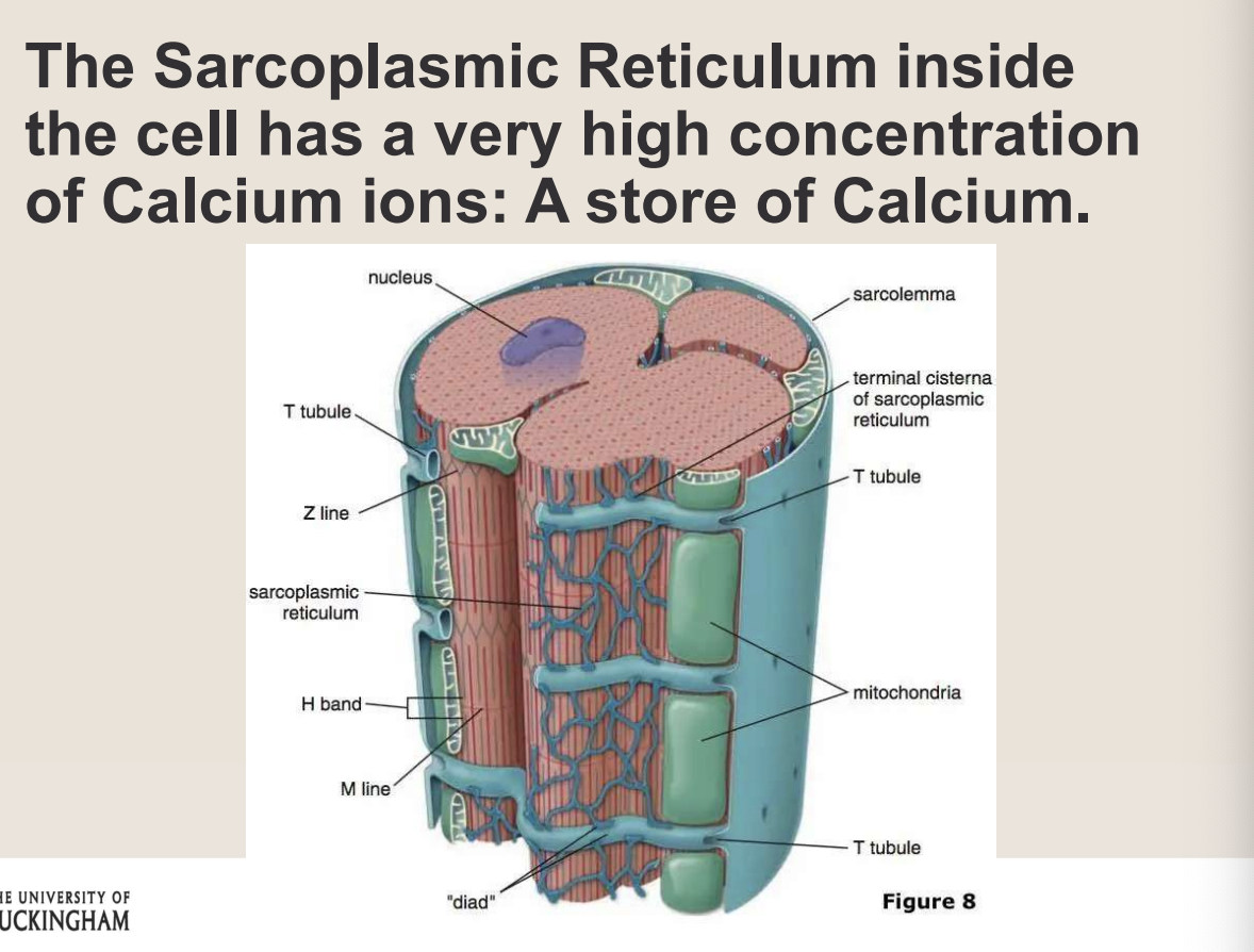 normally tropomyosin blocks actin’s binding sites, when intracellular calcium rises, calcium binds to troponin -> move tropomyosin aside -> myosin can attach to actin