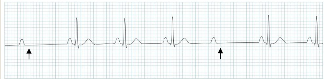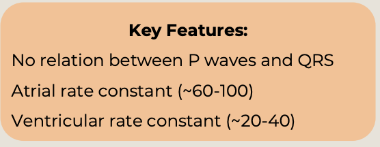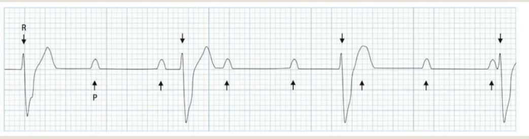 3rd degree heart block (aka complete heart block) = atria and ventricle act independent of each other