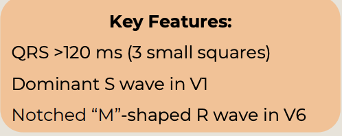 What are the ECG key features of LBBB?