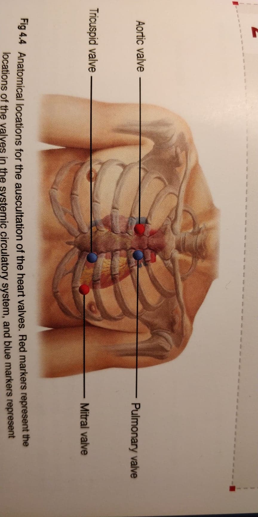 2nd left ICS 2.5 cm from the sternal border to the 3rd right cc 1cm left of the sternum.