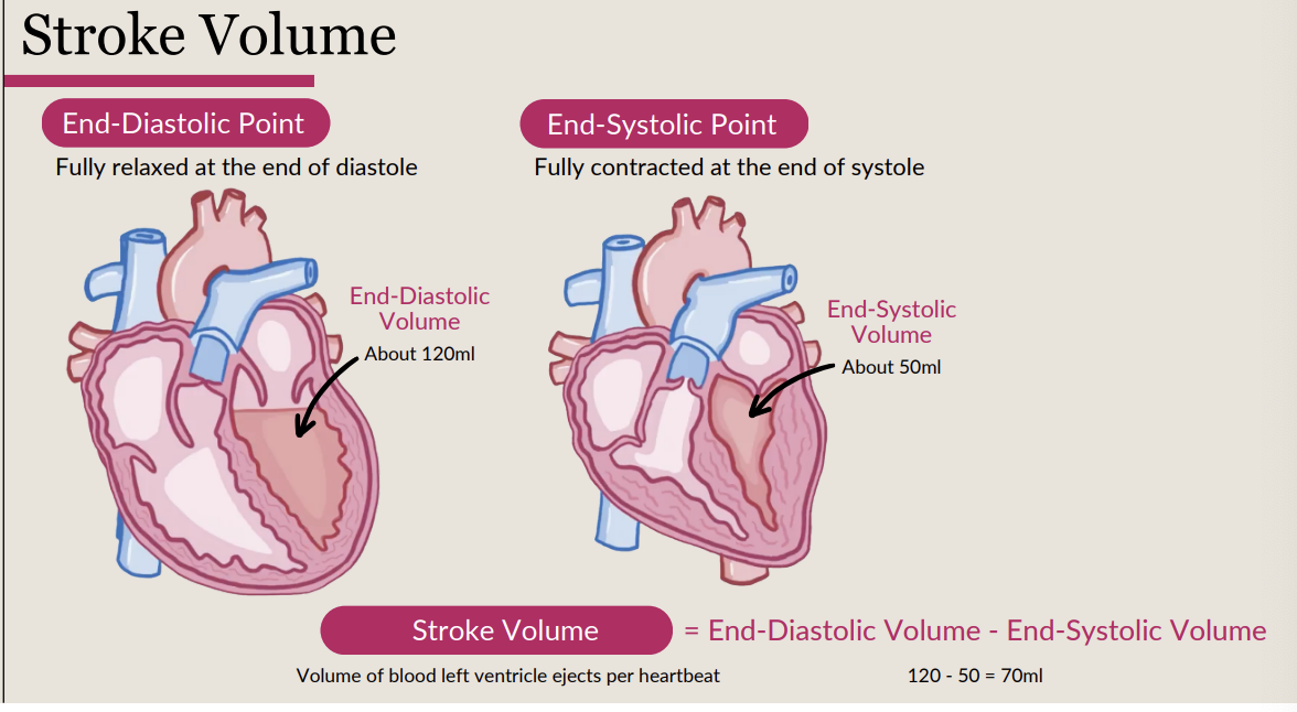 stroke volume = EDV - EDS and cardiac output = stroke volume x HR