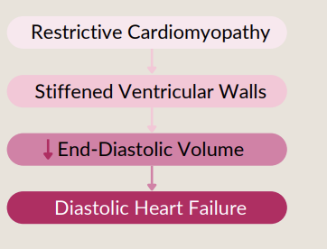 restrictive cardiomyopathy = stiffened ventricular walls