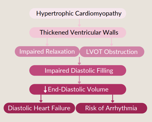 (early hypertrophy causes diastolic dysfunction; later decompensation causes systolic dysfunction)