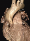 ο Arteries: aortic arch and its 3 main branches (brachiocephalic artery, left common carotid, left subclavian artery)