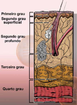 3º Grau: Toda a Derme e uma parte da hipoderme