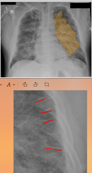 Inspiration: should see at least 7 anterior or 9 posterior ribs