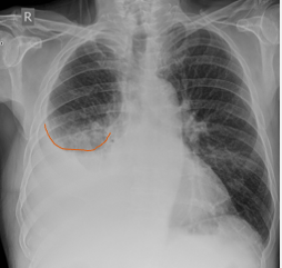 What 4 things are you looking for when assessing diaphragm pathology in CXR? [4]