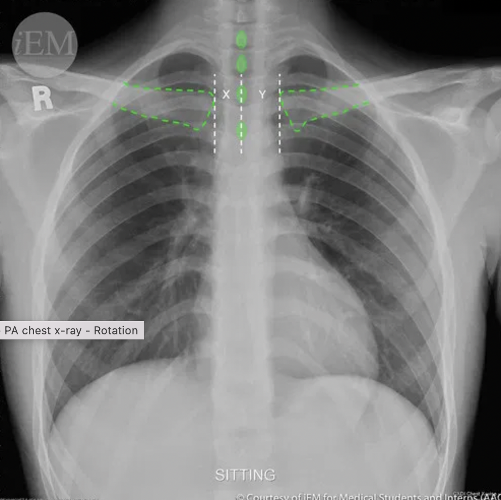 How can you assess rotation in a CXR?