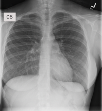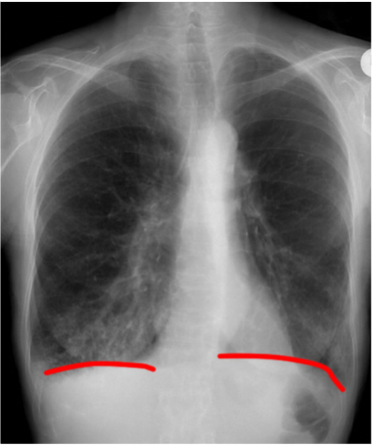 Count the anterior ribs on the right → 6 anterior ribs should be visible above the right hemidiaphragm
