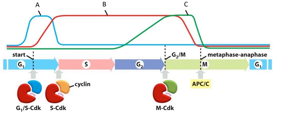 Faux. Ce sont les complexes cycline/Cdk qui contrôlent l’avancée dans le cycle.