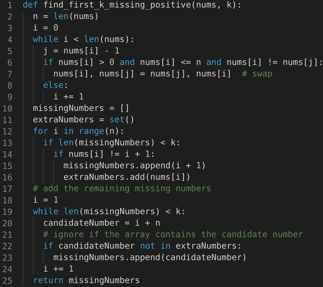 Find the First K Missing Positive Numbers