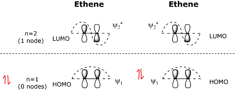 Draw the HOMO and LUMO orbitals for Ethene