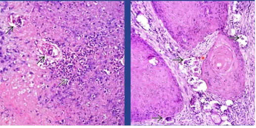 Persistant inflammation due to eggs can lead to squamous metaplasia and eventually squamous cell carcinoma (SCC)
