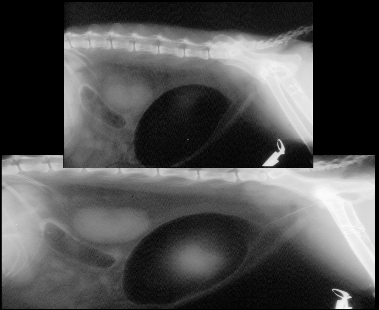 position in different recumbency to allow positive contrast to outline the entirety of the UB