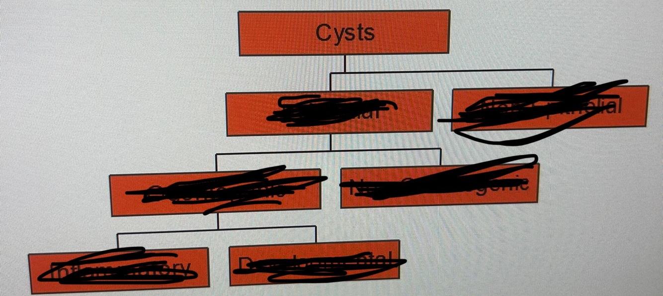 Inflammatory collateral cysts- include paradental cysts, mandibular buccal bifurcation cysts