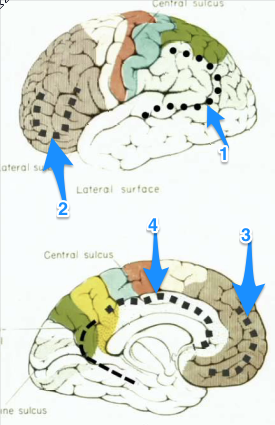 These are all the associated areas mediating cognitive function: 1) Parieto-Occipito-Temporal 2) Orbitofrontal 3) Prefrontal and 4) Limbic areas