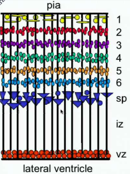 Layer 1 = marginal zone, arrived first. Then layer 6, then 5, then 4, then 3, then 2.