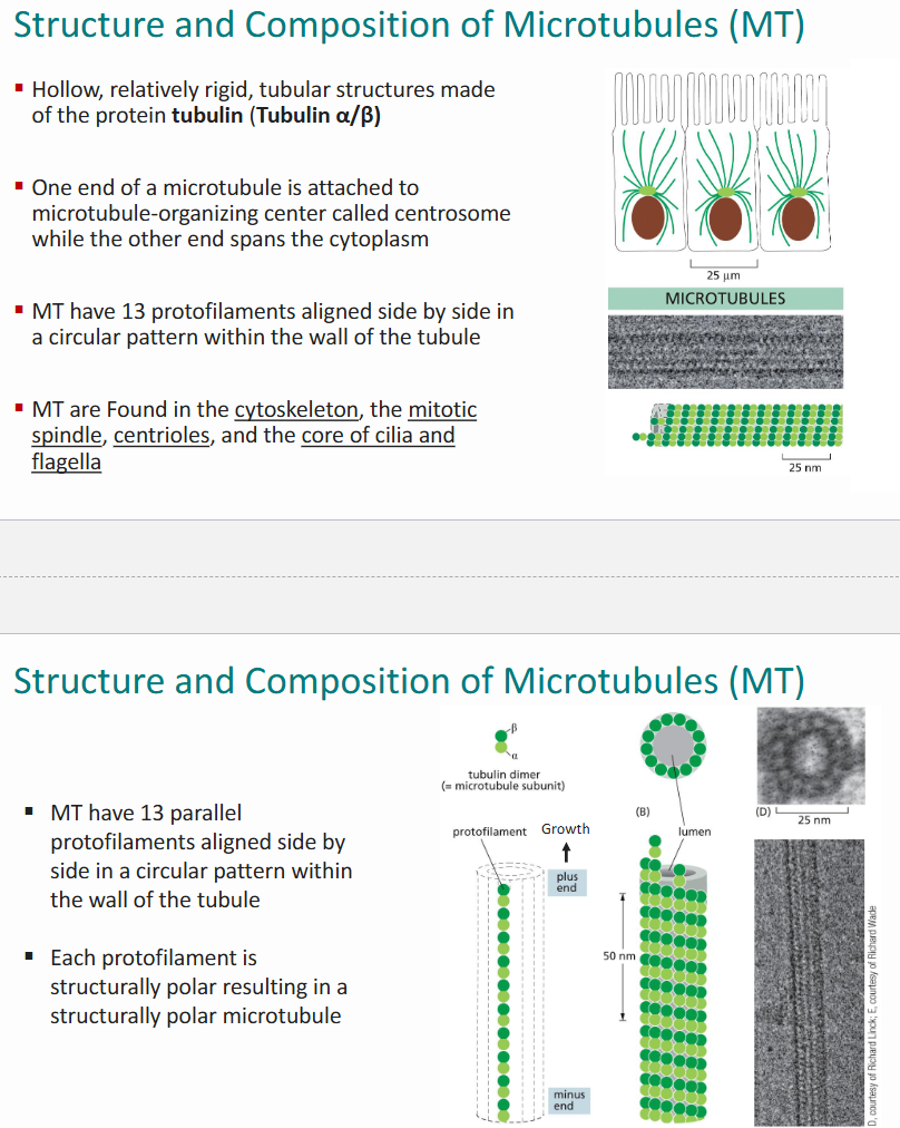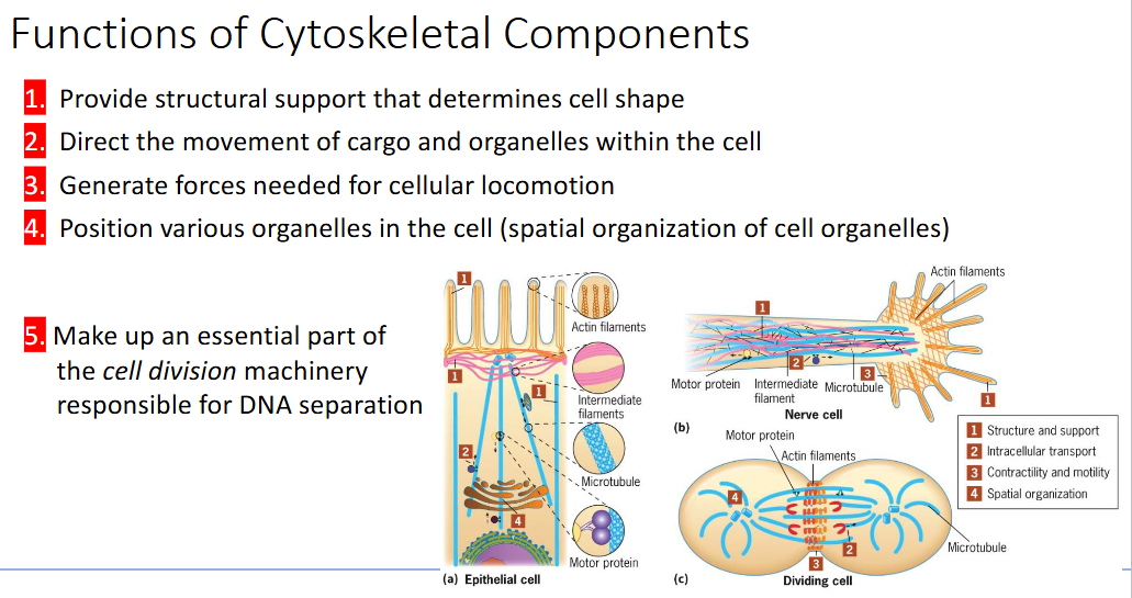 ✓ Provide tracks for vesicles and organelle transport within a cell