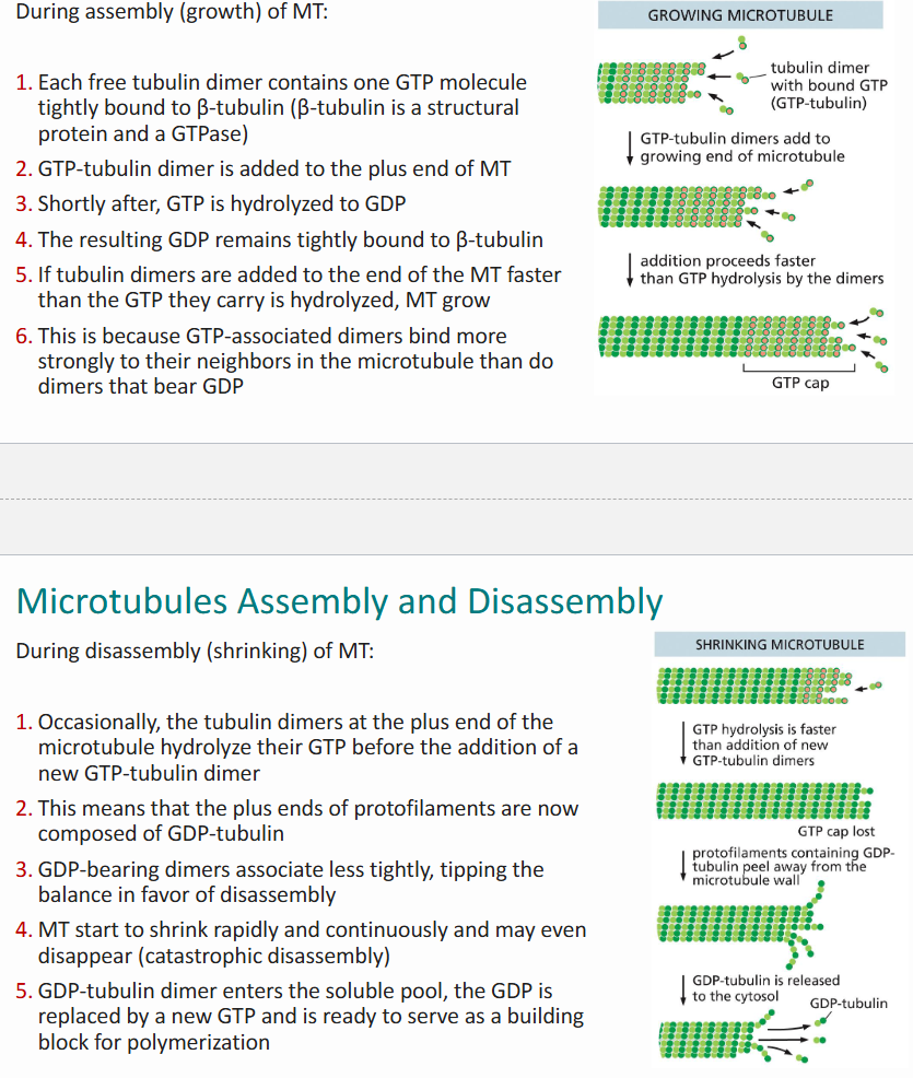Explain microtubule assembly (growth) and disassembly (shrinking)
