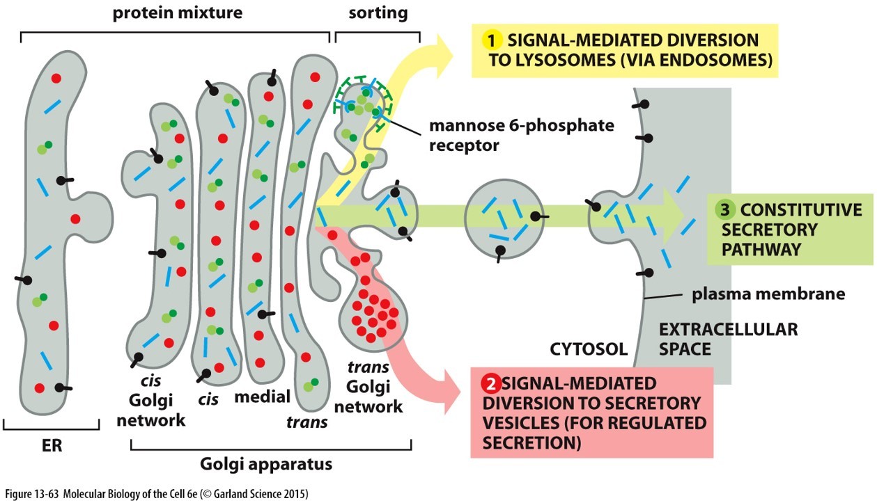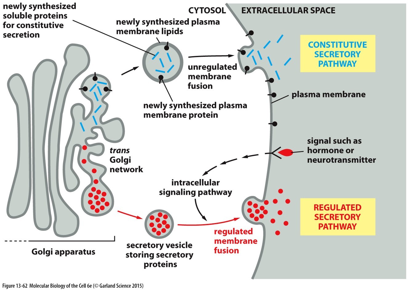 regulated secretory pathway. Sends out secretory proteins (have signals on them).