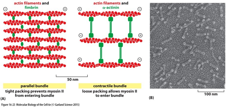 a-actinin. Forms contractile bundle (orientation of actin filaments is opposite in terms of + and -)