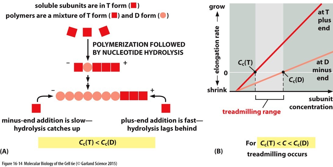 Treadmilling happens when you’re both above the critical concentration of T and below the critical concentration of D