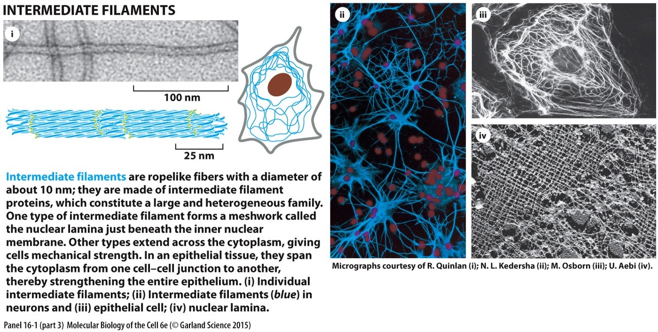 Where can a dense network of intermediate filaments be found? Why? What are they called?