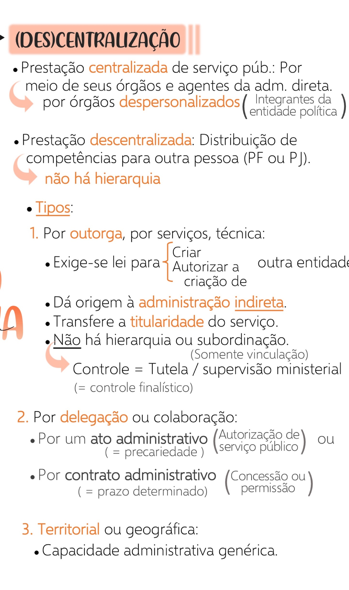 Concentração - extinção de um órgão, avocação de atribuições entre órgãos.
