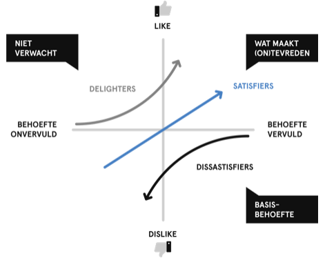 Classificeren klantbehoeften naar: ‘dissatisfiers, satisfiers en delighters’