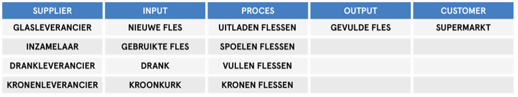 Met het High-Level overzicht en de relatie leverancier-klant heltp de SIPOC op de scope van het project vast te stellen.