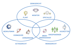 Belbin heeft 9 teamrollen omschreven verdeeld in 3 groepen: 1. Denk, 2. Actie, 3. Mens. Succesvol team heeft juiste samenstelling.