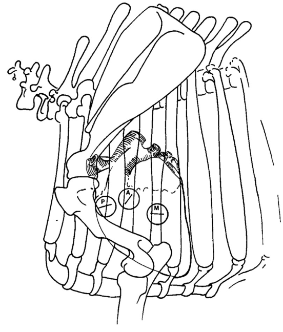 Left 3rd intercostal space, just below a horizontal line drawn halfway between the point of the shoulder and the sternum