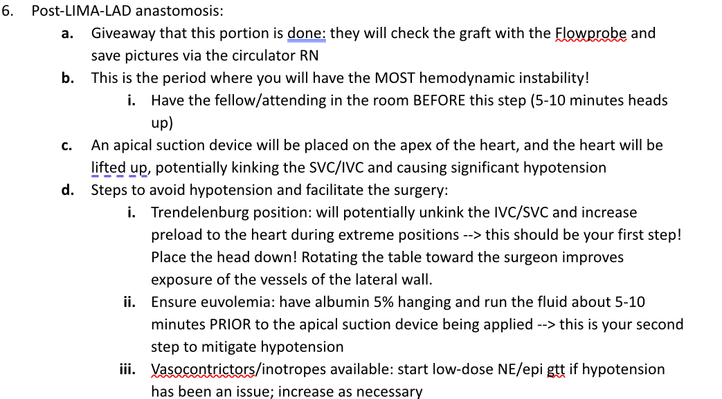 What is important to avoid, if you can, before LIMA-LAD graft is complete during off-pump CABG?