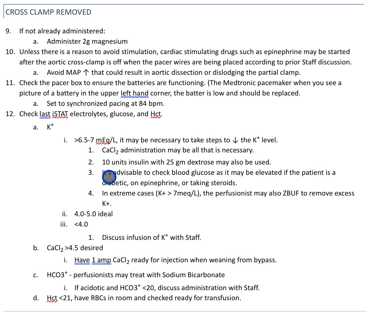 What is the ideal K+ level when coming off bypass/ cross clamp on the aorta removed (during on-pump CABG for example)?