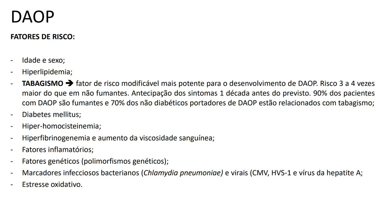 A DAOP decorre predominantemente de f**enômenos ateroscleróticos sistêmicos que provocam obstruções arteriais **e está associada a alto risco de morbimortalidade cardiovascular.