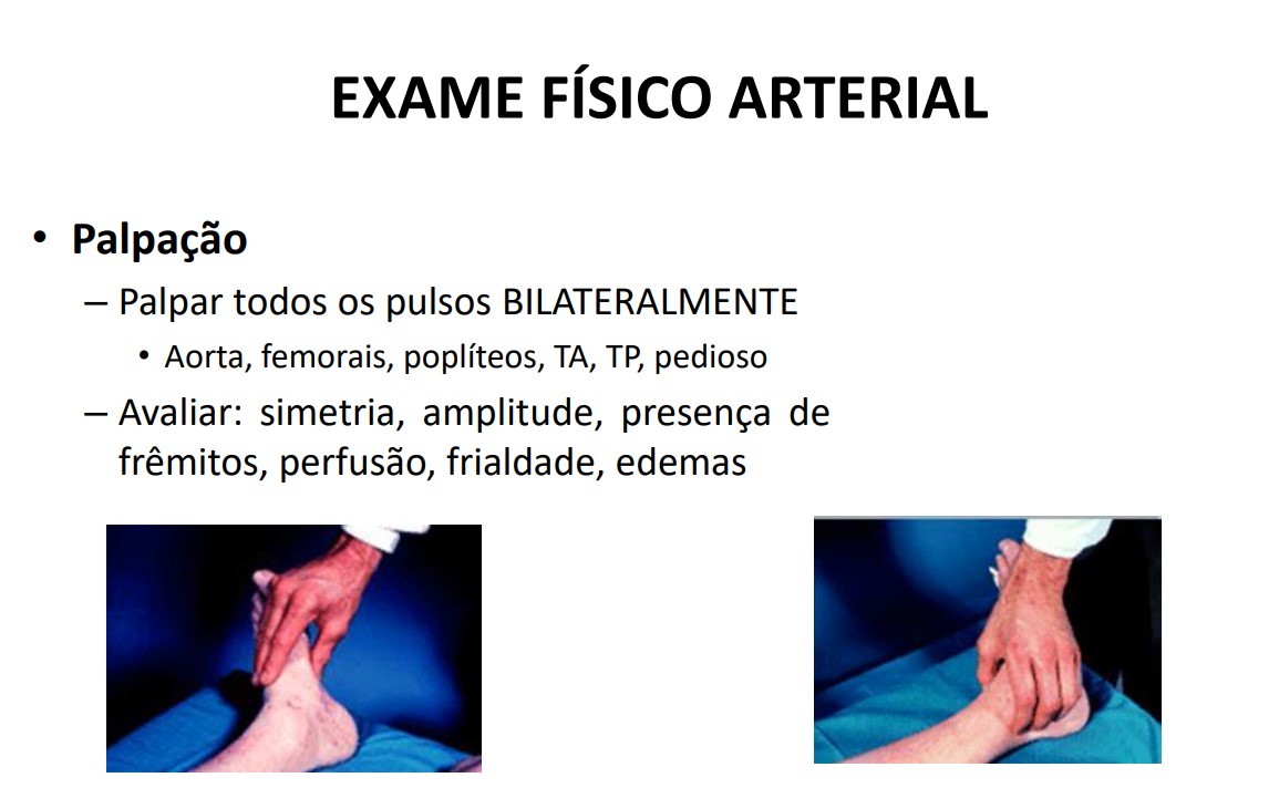 Palpação exame físico arterial