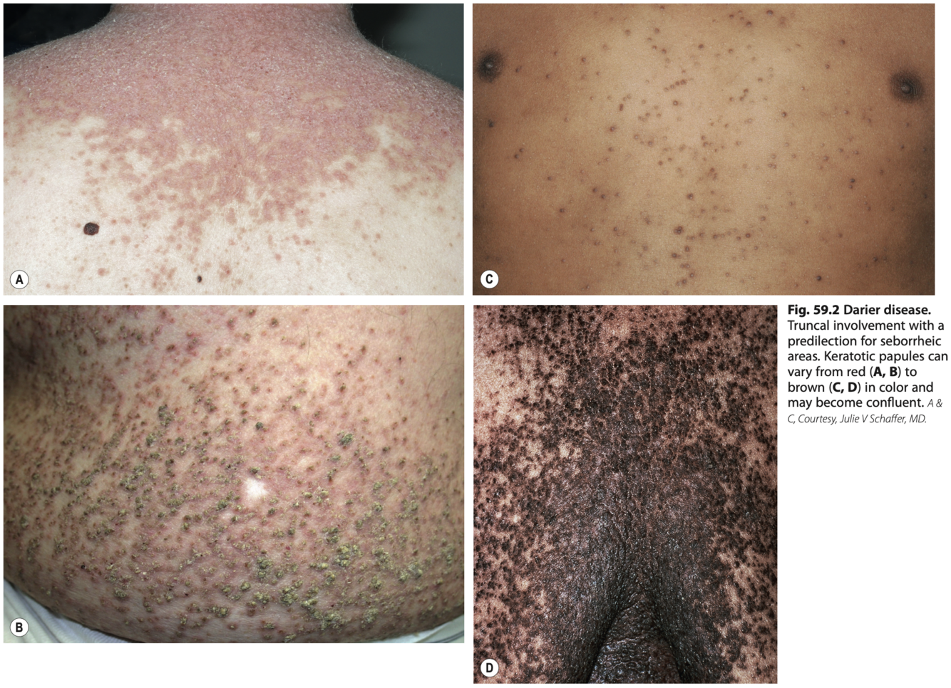 Tronc, cuir chevelu, visage, cou latéral (séborrhéique)