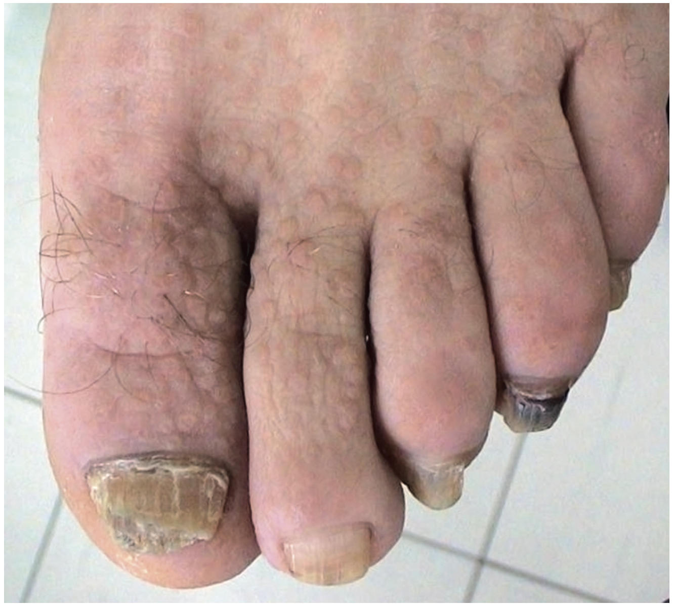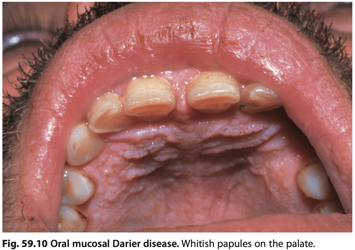 Papules blanchâtres indolores ou rugueuses (15-50%)