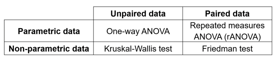 Note: the standard two-way ANOVA assumes parametric data andindependent samples.