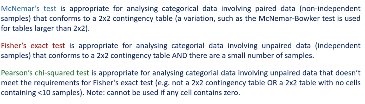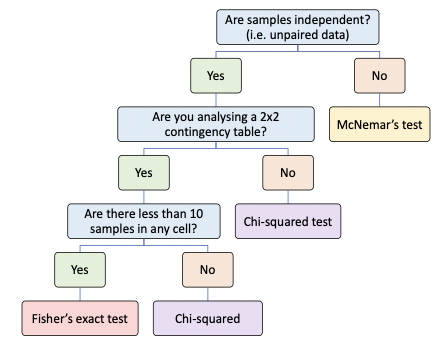 How do you choose the appropriate statistical test to analyse categorical data?