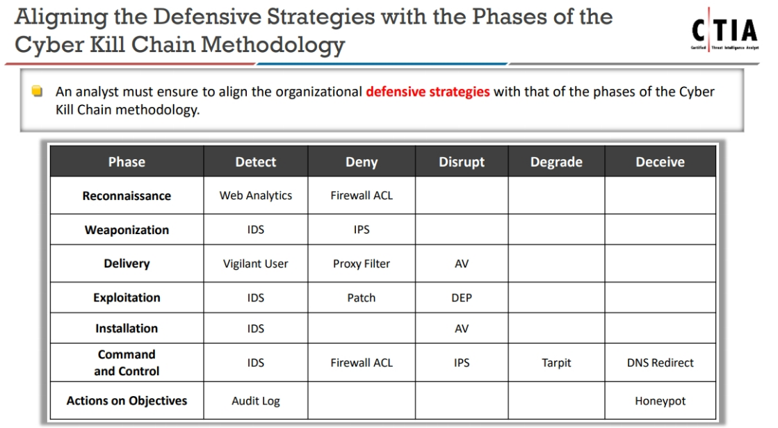 Aligning the Defensive Strategies with the Phases of the Cyber Kill Chain Methodology